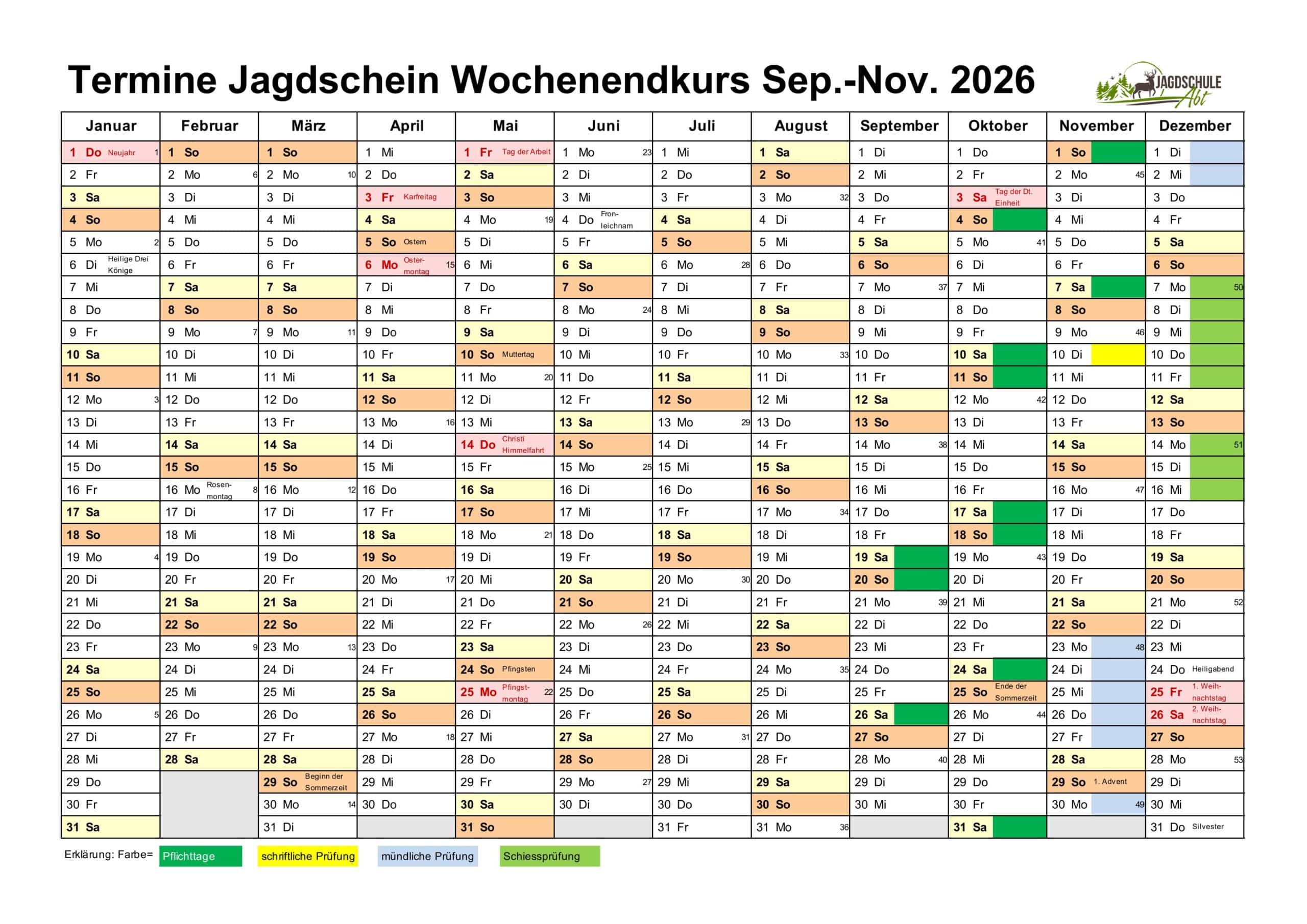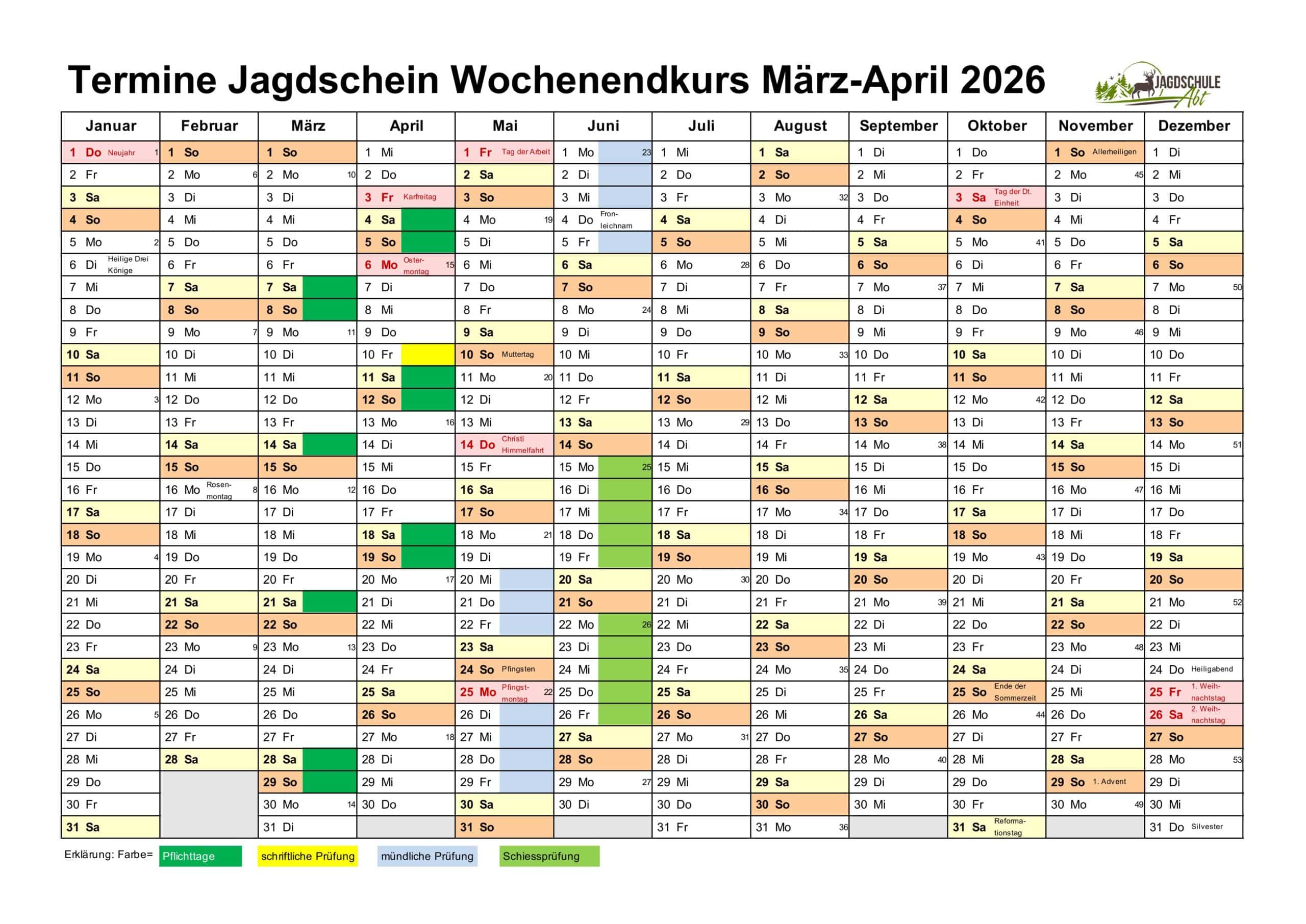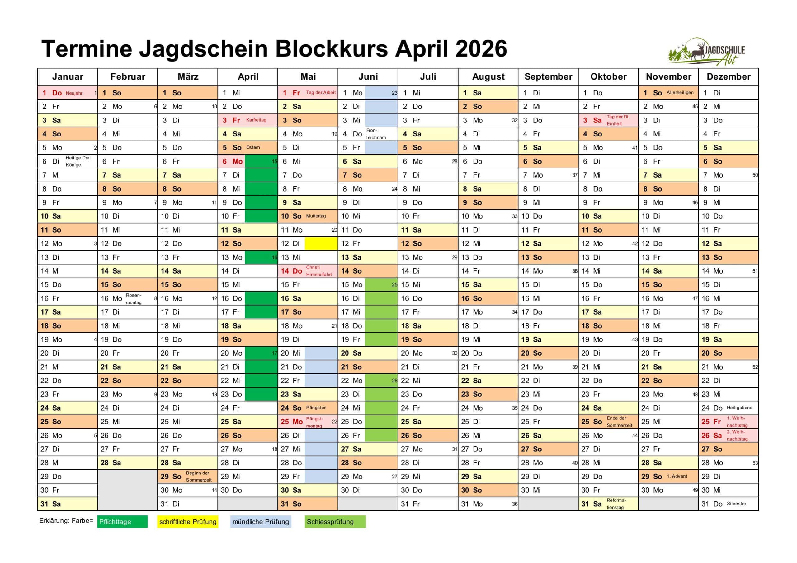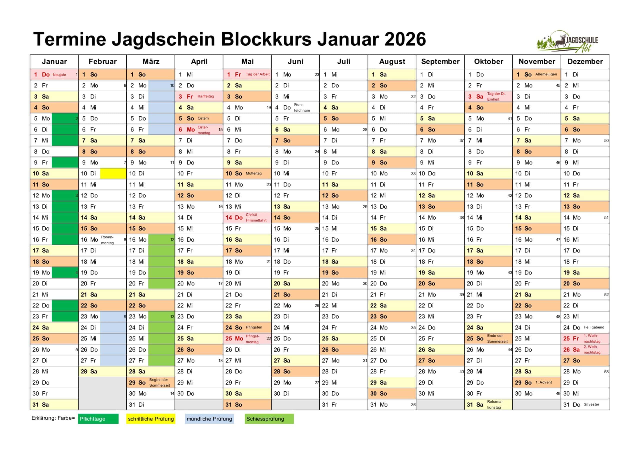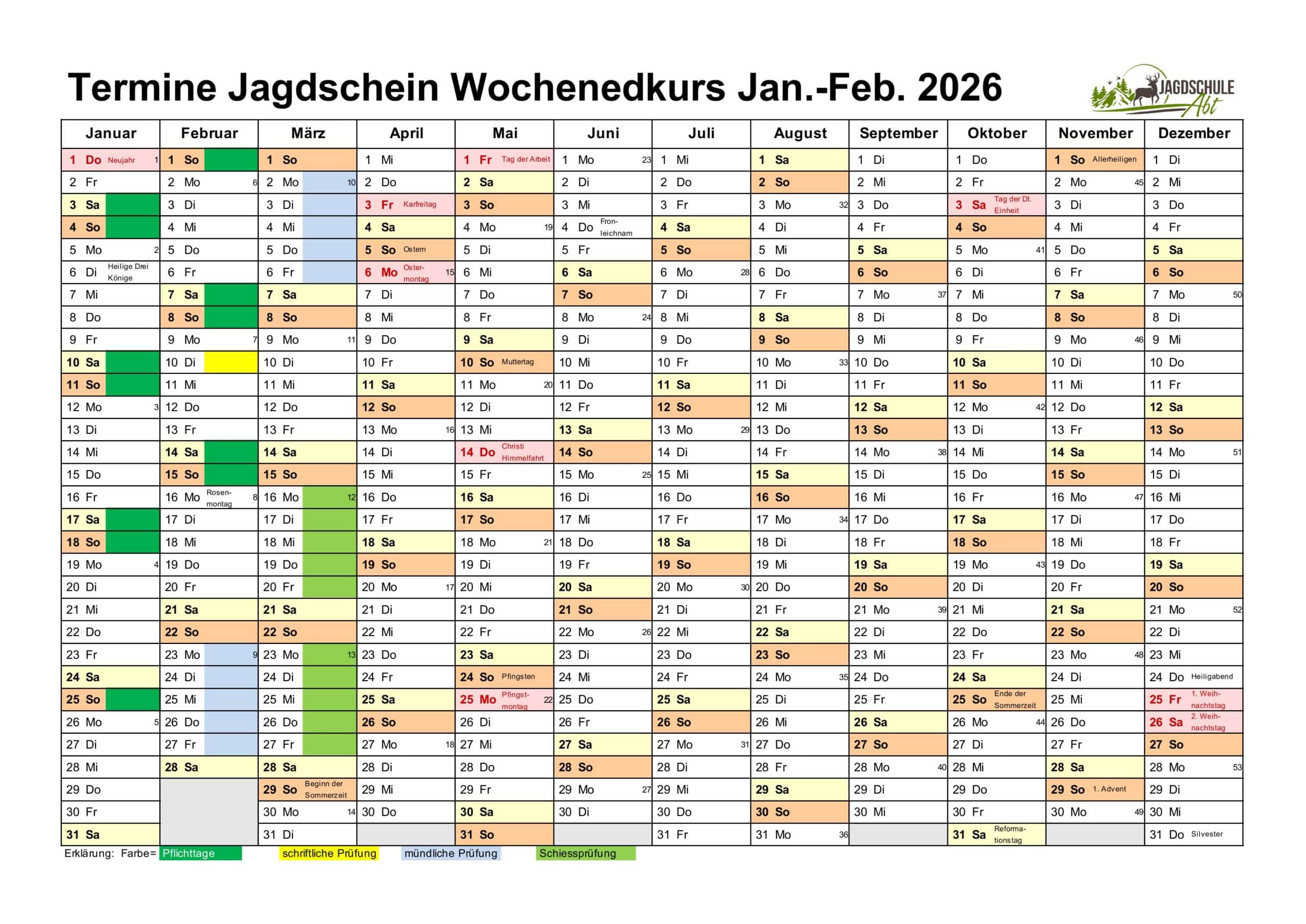 Praxis & Theorietage für den online Jagdscheinkurs (Wochenendkurs) im Januar – Februar 2026